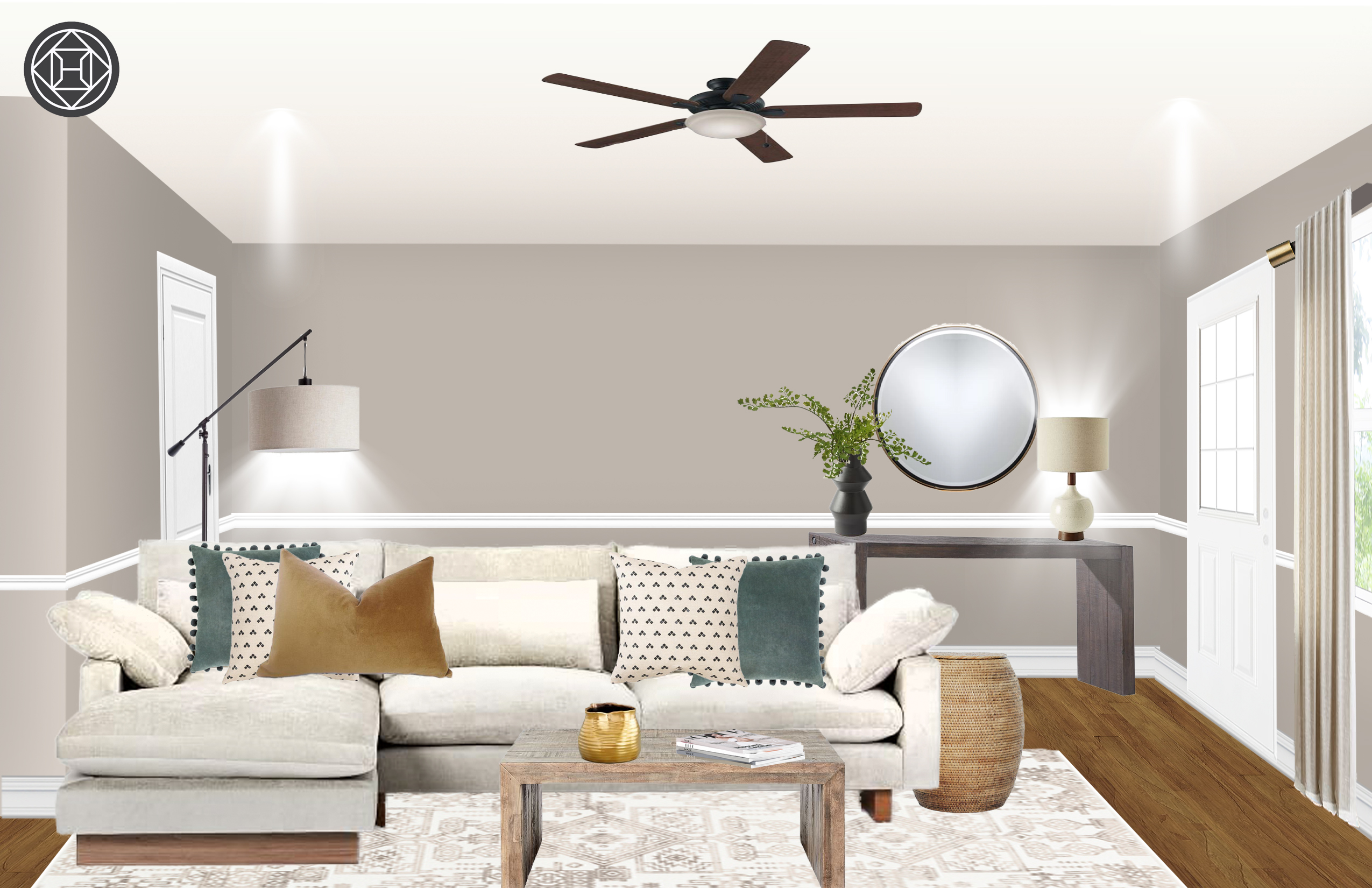 Bohemian Farmhouse Rustic Transitional Living Room Design By