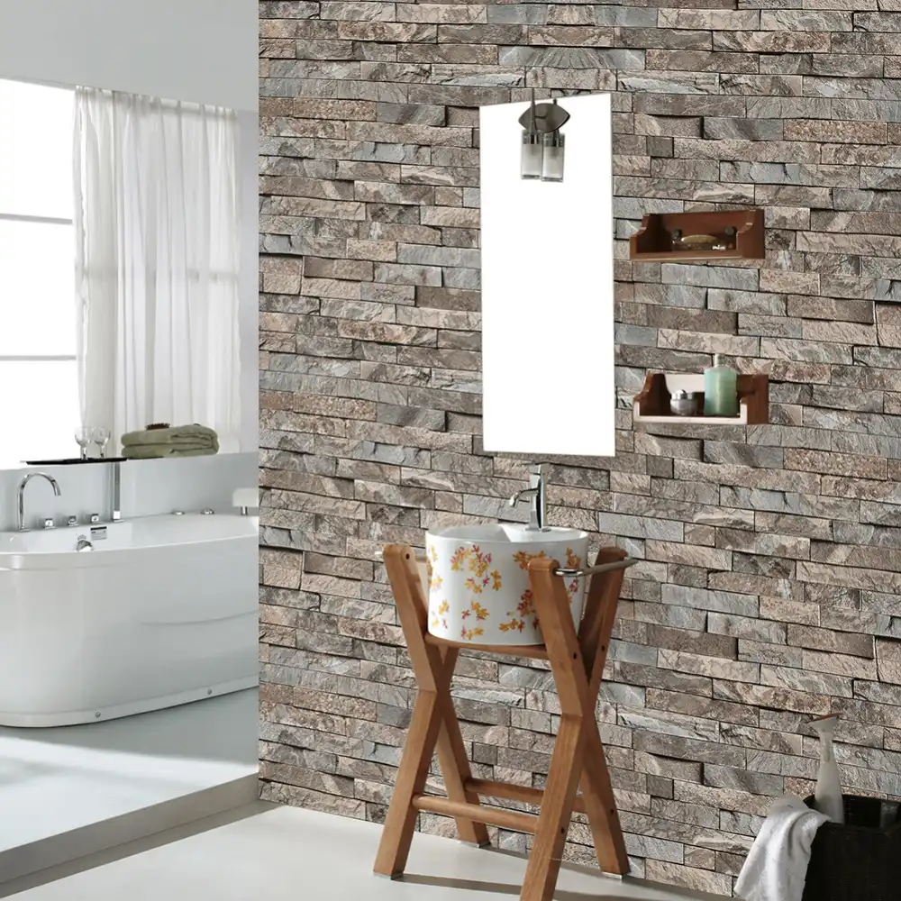 Haokhome Faux Brick Textured 3d Vinyl Wallpaper Pvc Brown Grey