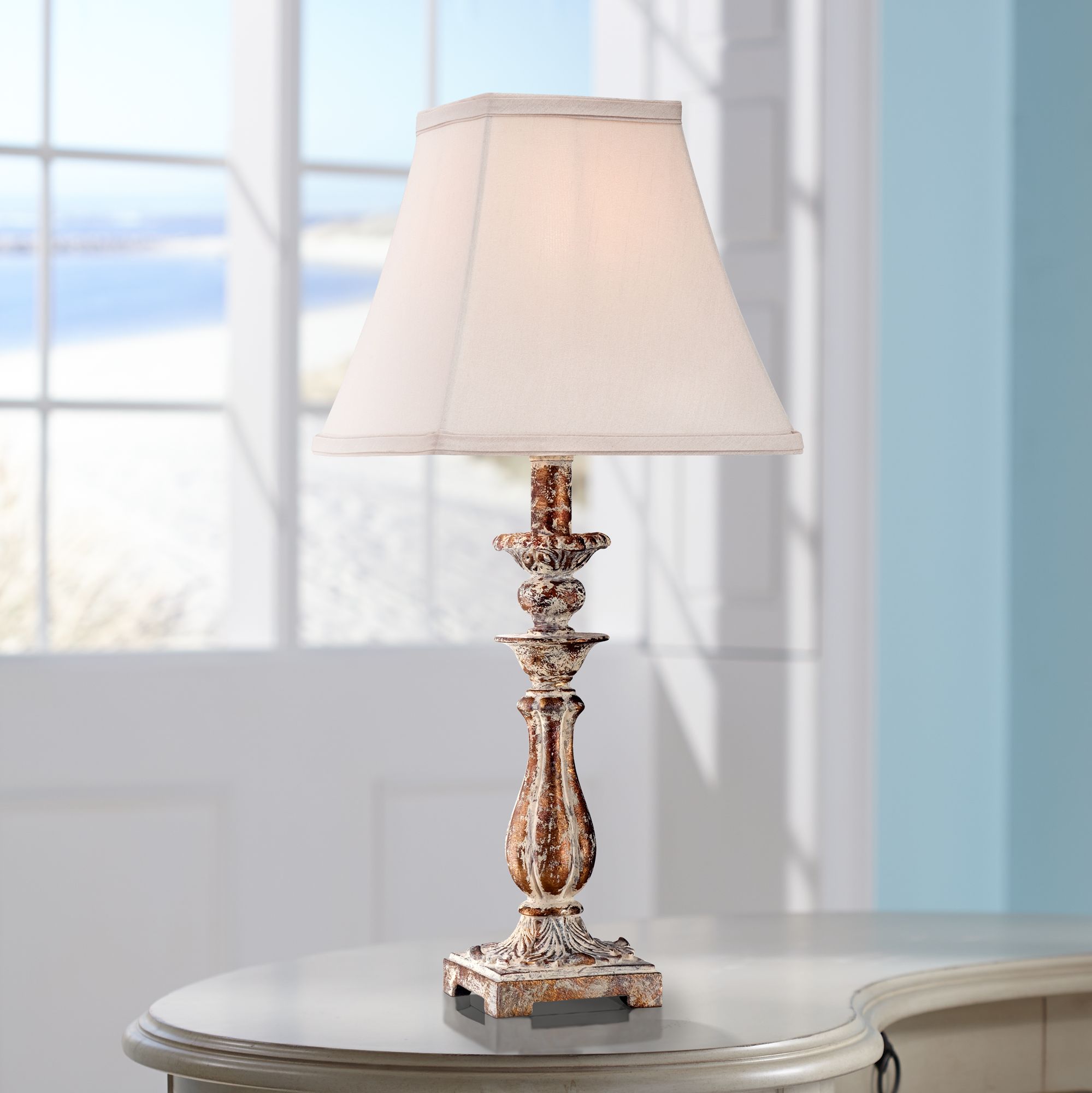 Cottage Table Lamp Distressed Antique Gold White Shade For Living
