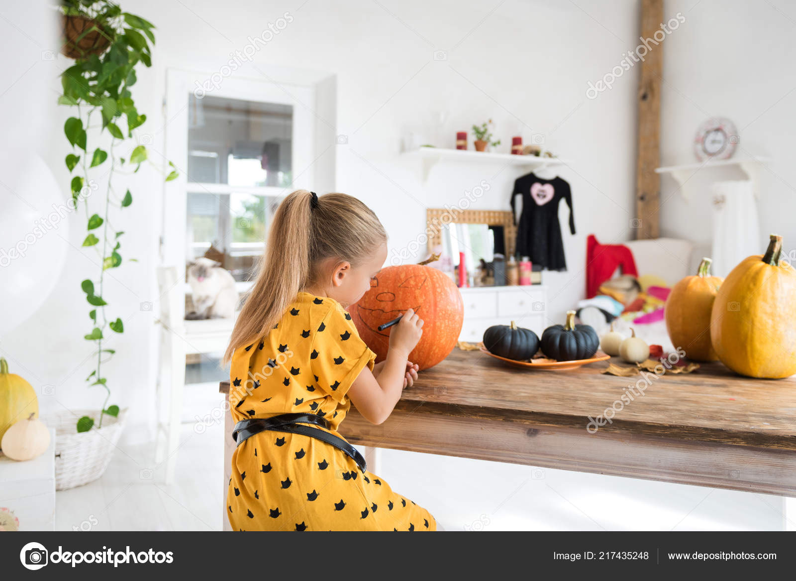 Cute Young Girl Sitting Table Living Room Drawing Face Large