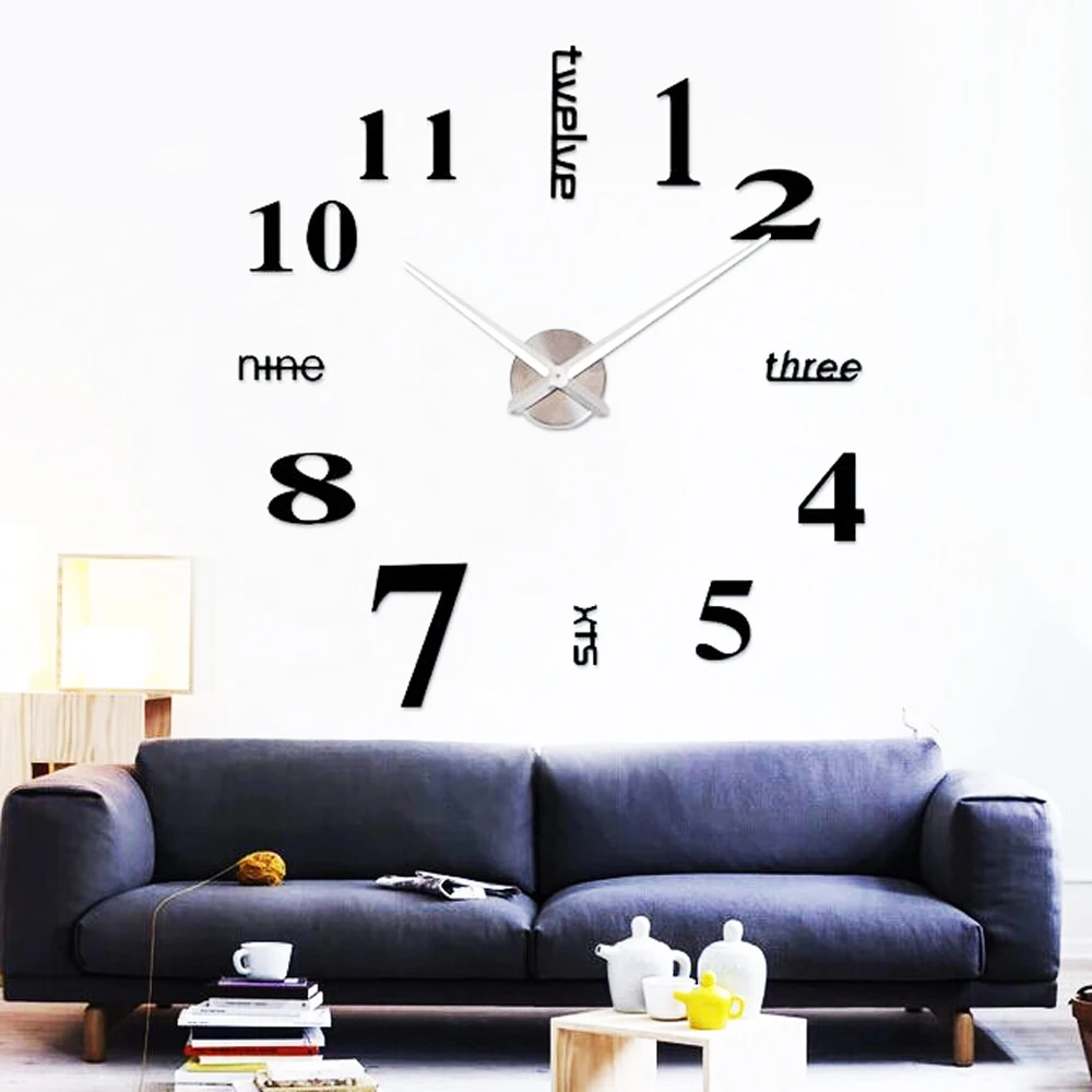 Modern Mute Diy Large Wall Clock 3d Sticker Home Office Decor