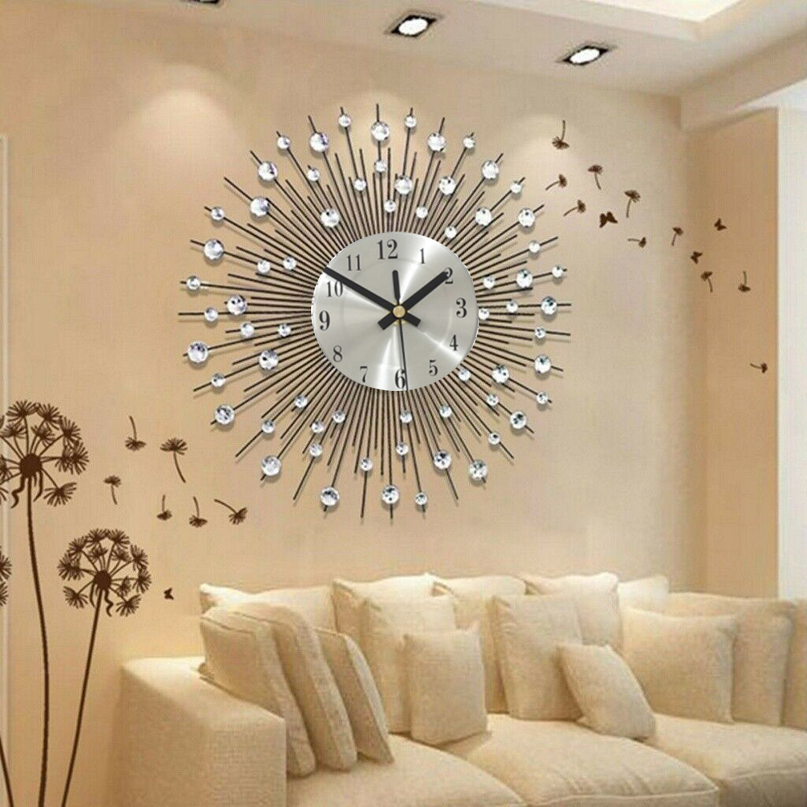 Modern Luxury Large Wall Clock Quartz Art Round Diamond Living