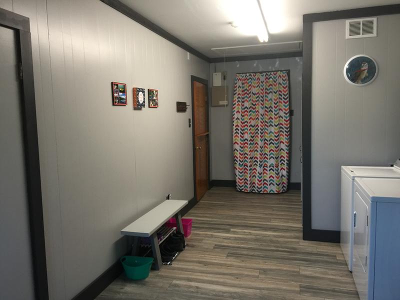 Gray painted house interior. The same shade is also a favorite of geremia design and klopf architecture both based in the san francisco bay area. I painted it this pale gray green in an oil base stain finish cleanable. Photograph by amy neunsinger.
